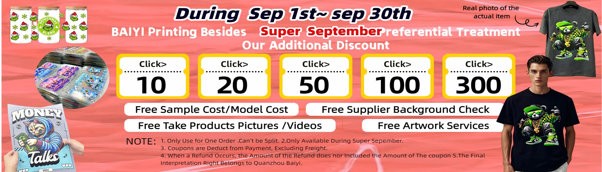 Quanzhou Baiyi Trading Co., Ltd. specializes in transfer product customization, large and small orders can be quickly shipped, can customize a variety of products. High-quality factory custom transfer pattern, the product highlights are obvious, the pattern is clear and fashionable, the color is very bright, the details are perfect, easy to use hot pressing or ironing, the surface is smooth, the feel is good, the durability is strong, the durability is amazing, 300-500 washing, such as new. We have tens of thousands of different designs for you to choose from, you can also send us customized designs according to your preferences, we have a professional designer team to provide you with free design changes, copy services, any kind of beautiful design can be designed and printed according to your preferences, contact customer service can get tens of thousands of best-selling design catalogs for free, free sample services. Factory self-made printing, efficient production, reliable product quality, fast delivery, 1-2 days of production, 4-7 days of transportation, about a week after payment to get your products, is definitely your most ideal partner! Thank you!